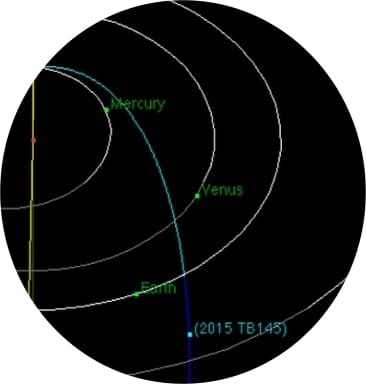 Asteroiden 2015 TB145 uppskattas vara mellan ca 300 till över 600 meter i diameter - en jätteklimp som är minst lika stor som den asteroid somen gång formade Söderfjärden. Den nya asteroiden svepte på betryggande avstånd förbi jorden på kvällen den 31 oktober strax utanför månens bana - 1,3 månavstånd eller ca 480 000 km från jorden. Asteroiden rör sig med en ovanligt hög hastighet: ca 35 km i sekunden eller 126 000 km per timme – vilket är dubbelt högre än den hastighet som beräknats för bumlingen som skapade Söderfjärden. Himlakroppens bana och höga hastighet har fått en del forskare att föreslå att det kan vara fråga om en komet, då sannolikt en död komet som förlorat sina flyktiga ämnen efter många passerar runt solen.